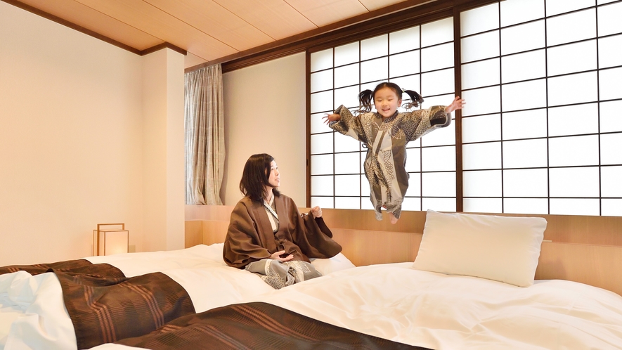 ロフトルームなど、ファミリー向け客室も充実!「虹館(にじかん)」
