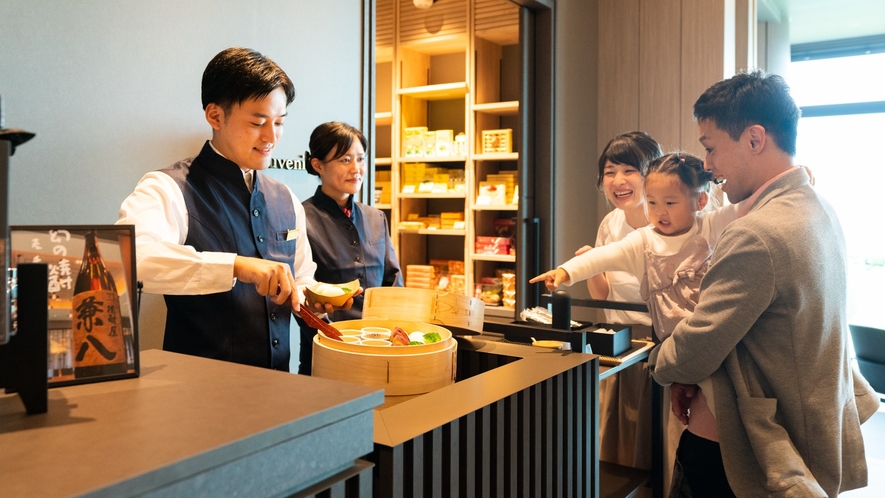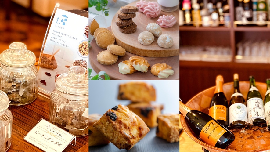 ウェルカムサービスとして、ドリンクとお菓子が無料で提供されます。