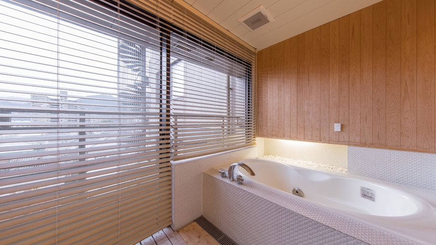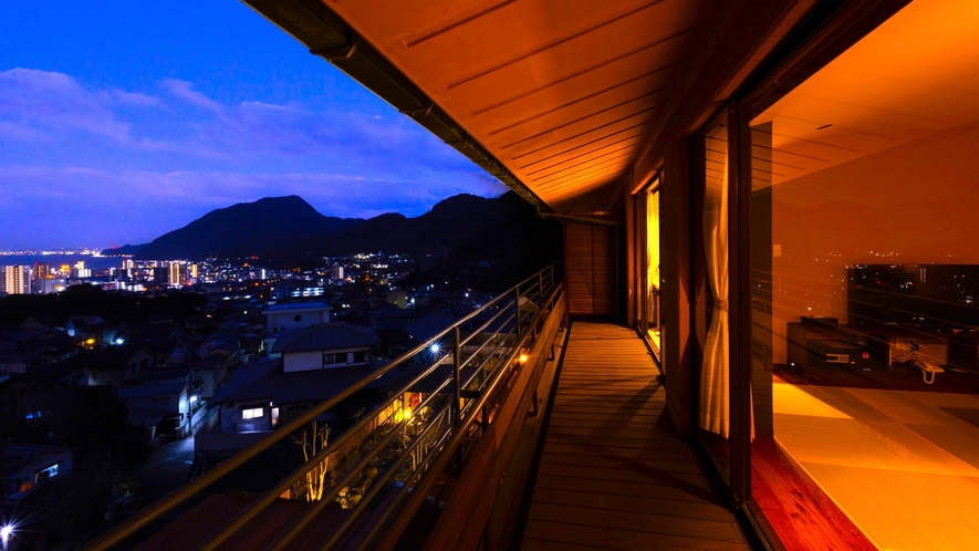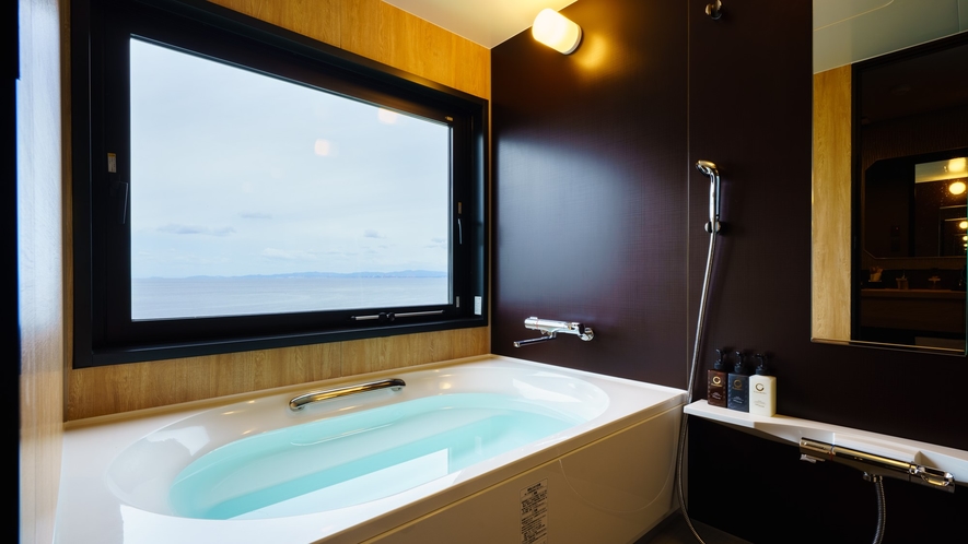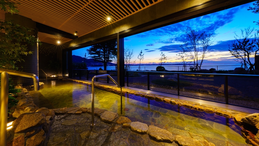 宙館の宿泊者だけが利用できる「宙湯」は、海抜約250mからの絶景とともに湯浴みが堪能できます。