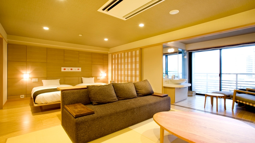 「中館」は、半露天風呂がついた客室やフリードリンクのラウンジ利用がついた客室など、コンセプトが異なるお部屋があります。