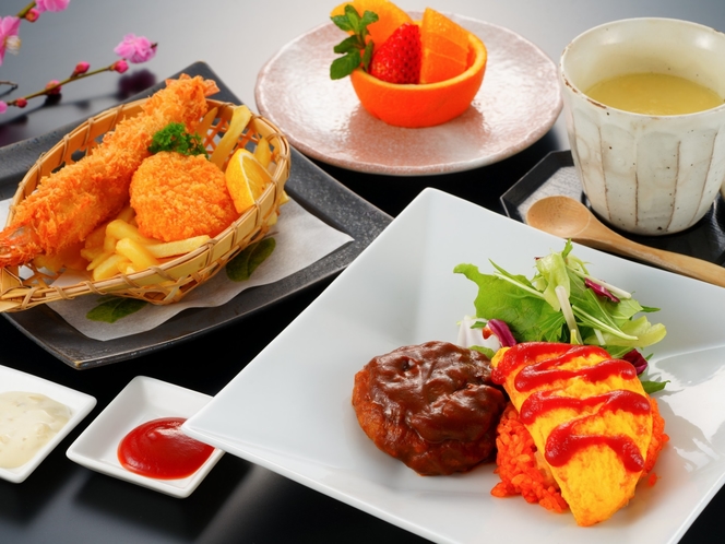 こども用の食事は、ハンバーグやエビフライなどの定番お子様ランチ。