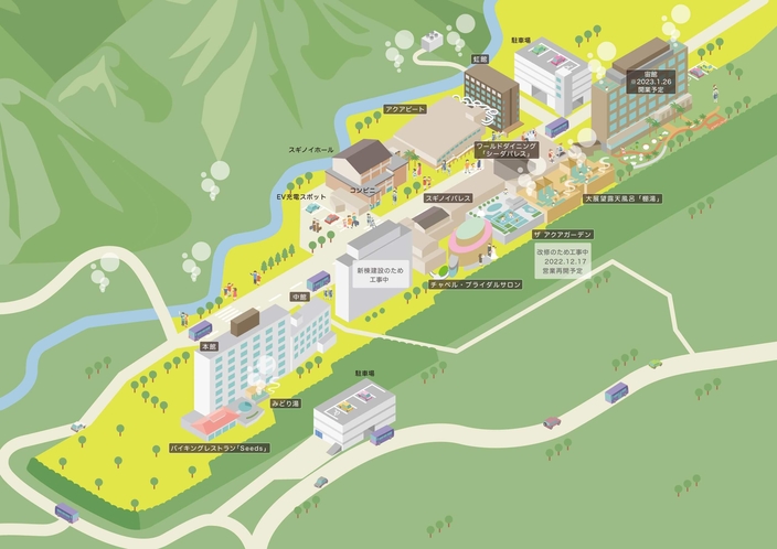 2023年1月26日には、海抜約250mから望む大パノラマの展望露天風呂から天空の絶景が見渡せる「宙館(そらかん)」が開業しました。