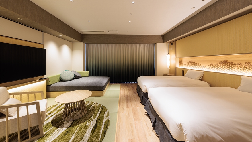 ホテル内は、畳と竹のフローリングを使用した落ち着いた雰囲気です。