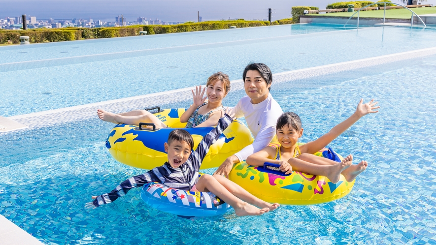 水着で遊べる露天型温泉施設「アクアガーデン」から見渡せる景色も最高です。