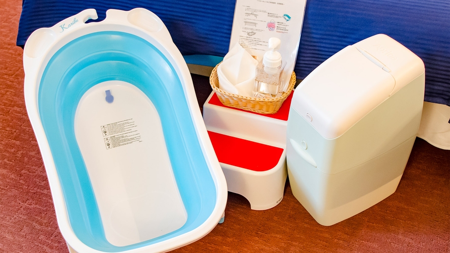 ベビーベッドはもちろん、おむつ用ごみ箱やベビーバスなどのレンタル品も充実しています。