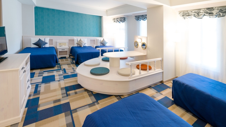 ブルーを基調とした室内。