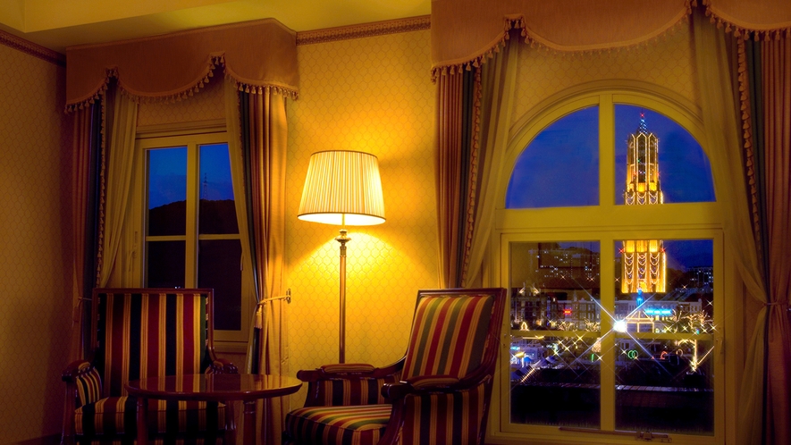 ホテルでは、ヨーロッパのような街並みを眺めながら非日常を堪能できます。